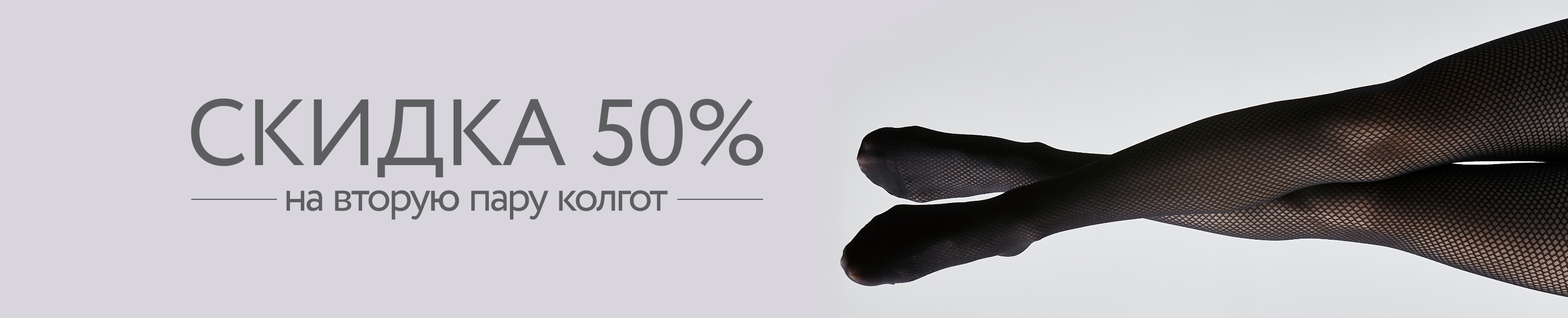 Условия акции: при покупке колготок предоставляется скидка в размере 50% на второй товар из ассортимента колготок с меньшей стоимостью в чеке. В акции участвуют только товары с одинарными белыми ценниками.