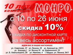 К юбилею компания подготовила специальную акцию: всем покупателям с 10 по 26 июня предоставляется дополнительная скидка 10% к имеющейся скидке по дисконтной карте.
